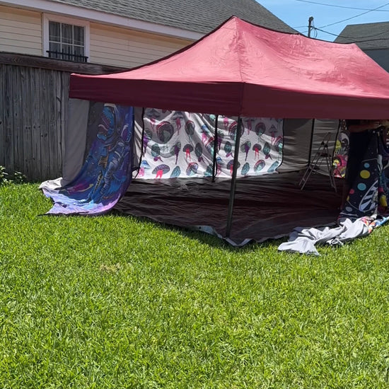 Turn your 10×10 canopy into an enclosed space. This unique and easy set up wall system turns your 10×10 canopy into an enclosed weather resistant structure that's breathable and allows you to control your airflow. Our wall system is completely modular and can be connected with other LazerTents to create custom shaped mega tents. The perfect solution for group camping, music festivals, ren fairs and short term camping trips!
